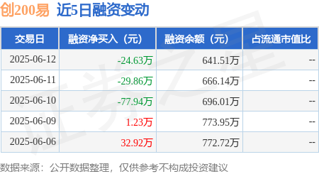 创200易:6月12日融资买入52.02万元,融资融券余额641.51万元